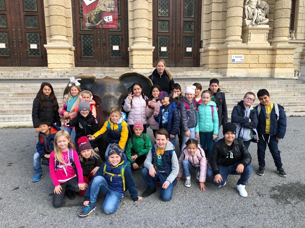 Auch die Kinder der 2c besuchten nach ihrem Dinosaurierprojekt zum Abschluss das Naturhistorische Museum. Dort hatten sie eine sehr interessante Führung. Sie durften echte Dinosaurierspuren sehen und sogar angreifen. Über Flugsaurier, Pflanzen- und Fleischfresser konnten die Kinder noch einiges dazulernen. Besonders beeindruckend war der „noch lebendige“ Allosaurus.